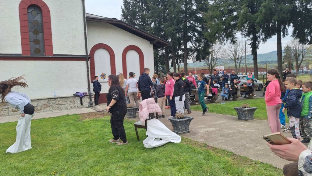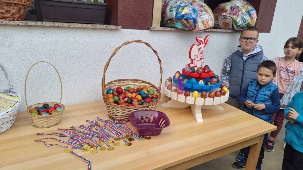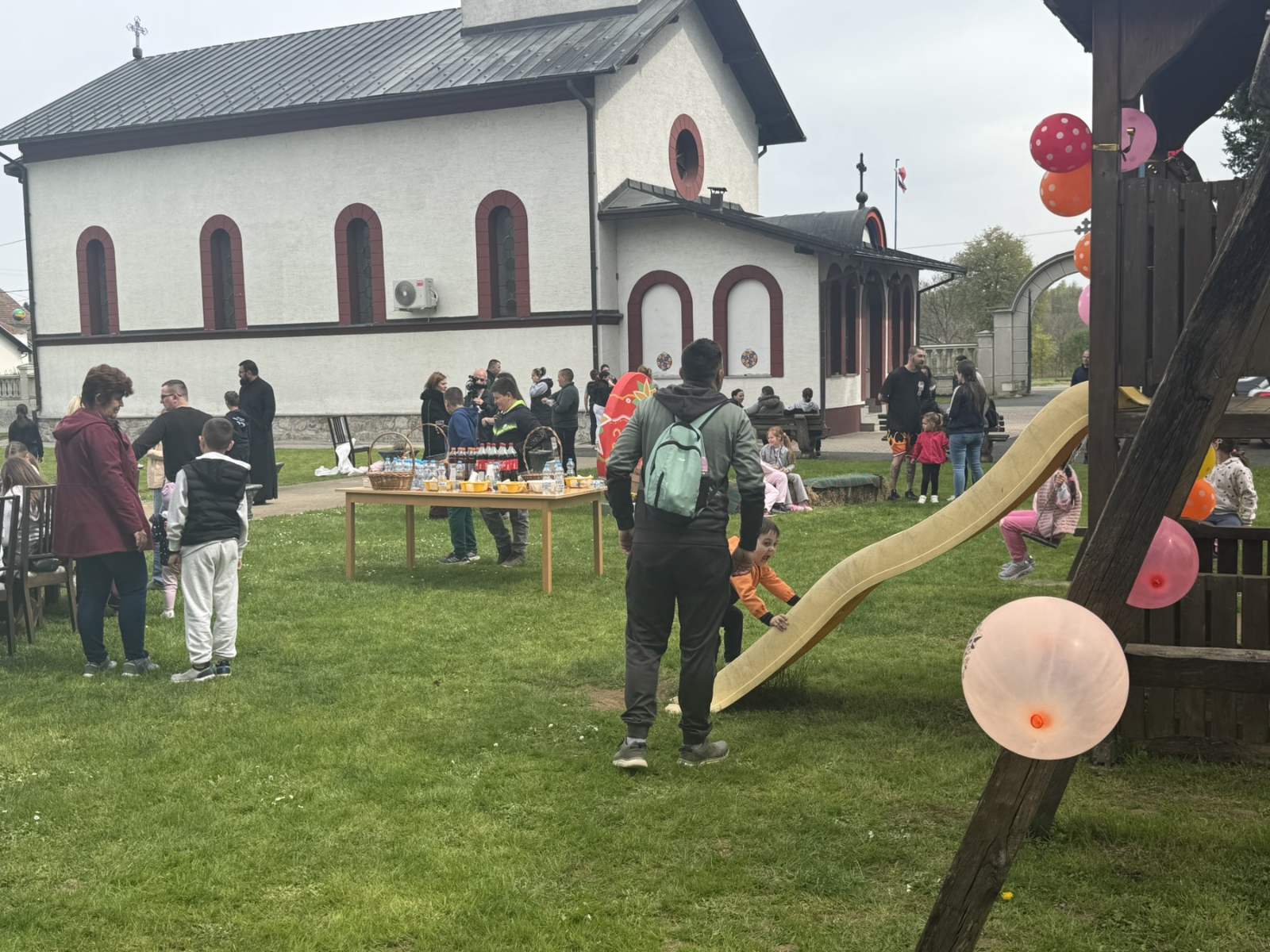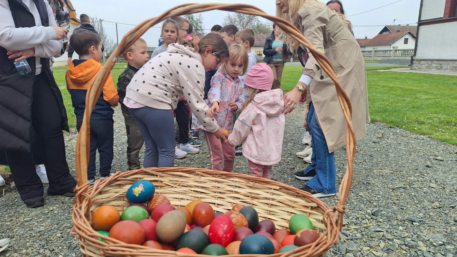 U dvorištu Hrama Svetog Dimitrija okupio se veliki broj djece koja su učestvovala u izboru najljepšeg i najtvrđeg jajeta i takmičila se u tradicionalnim igrama i sportskom poligonu.