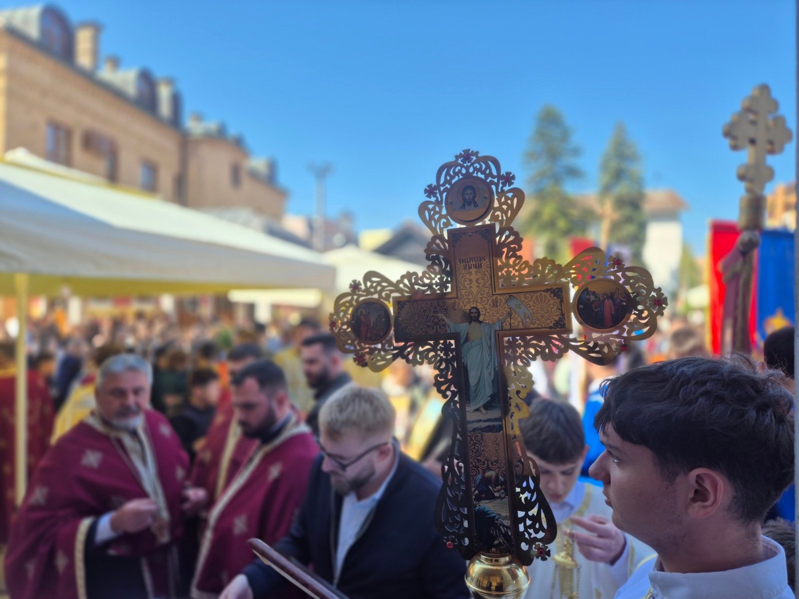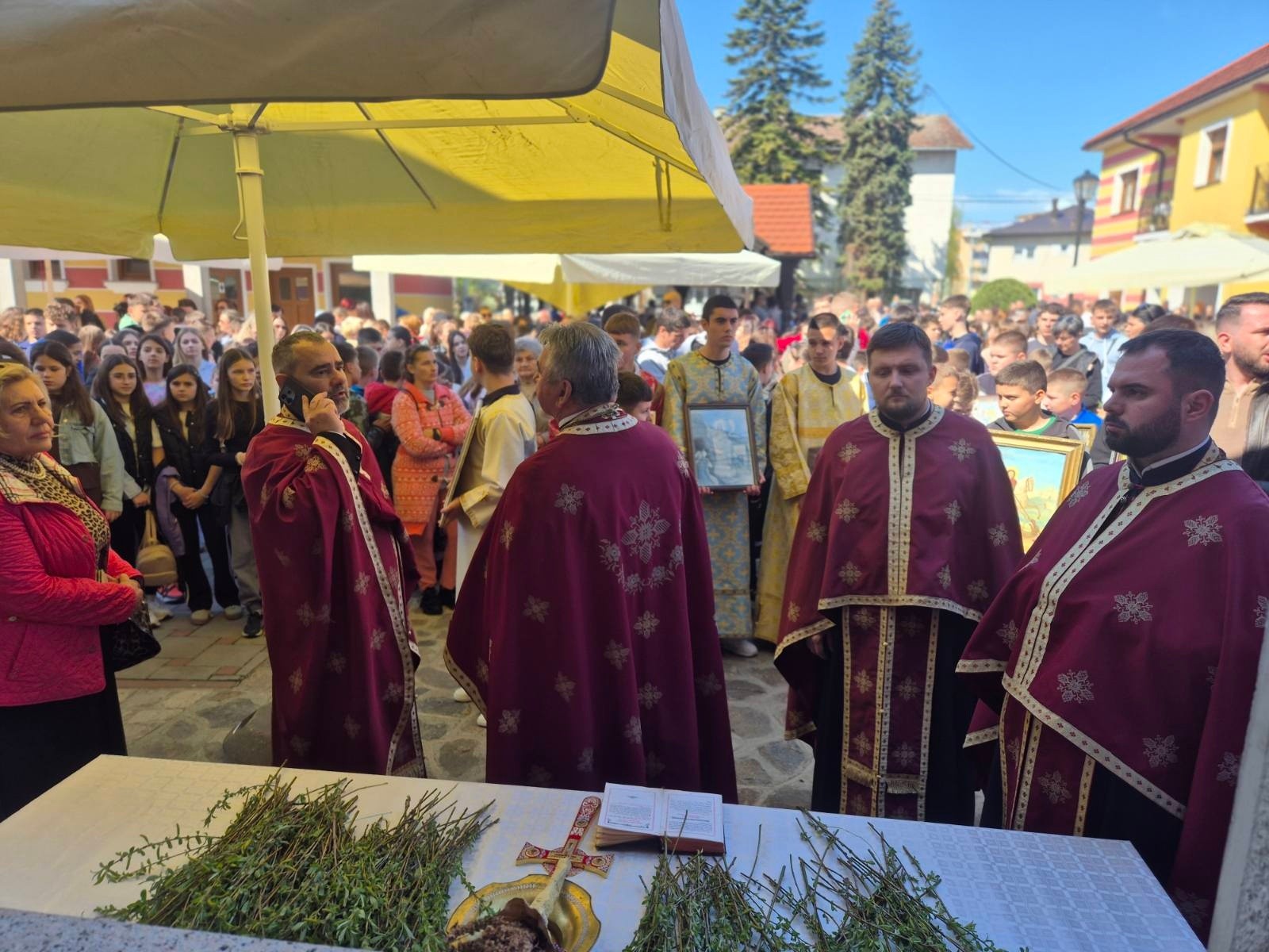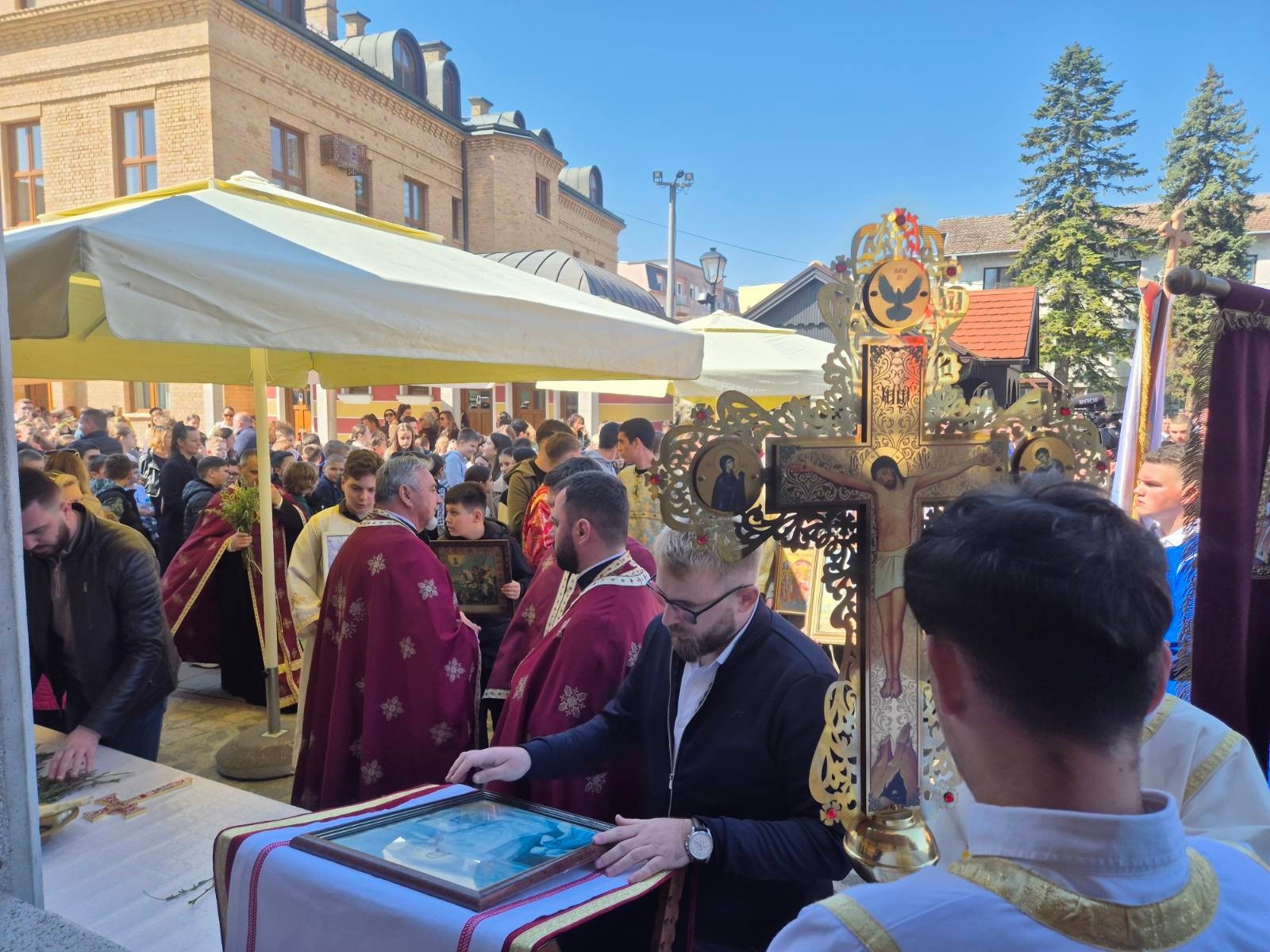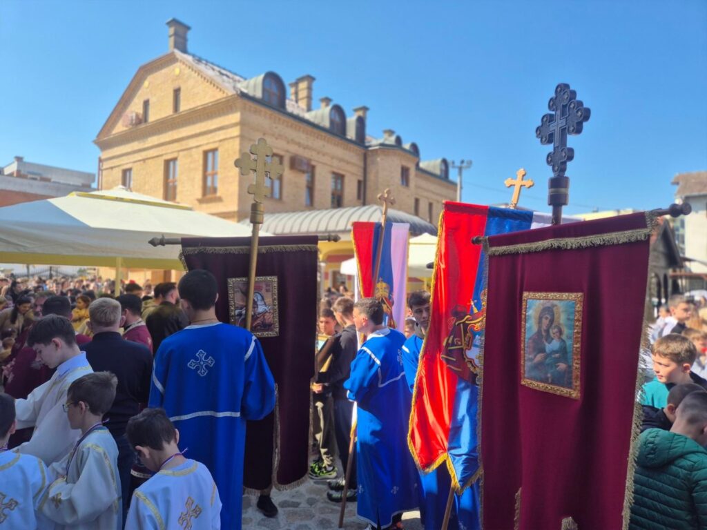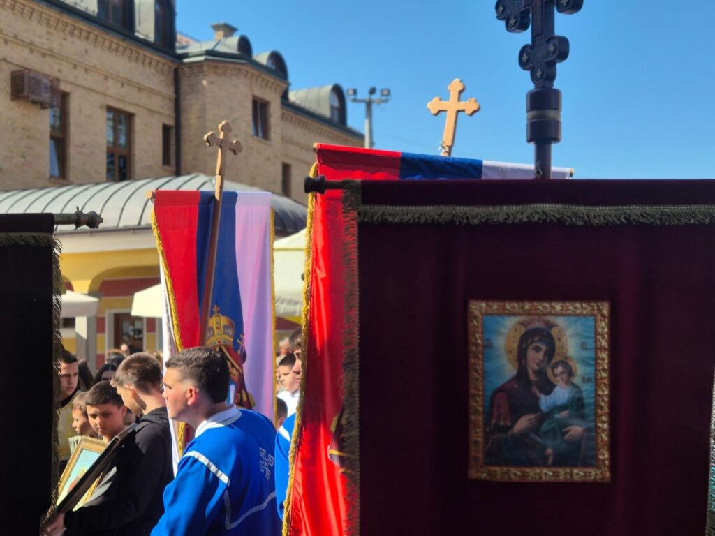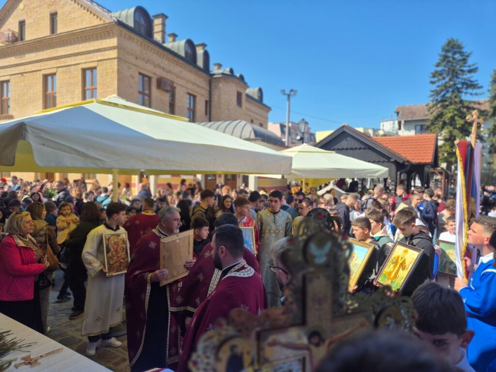 Učesnici svečane litije stigli su u portu Hrama Pokrova Presvete Bogorodice.